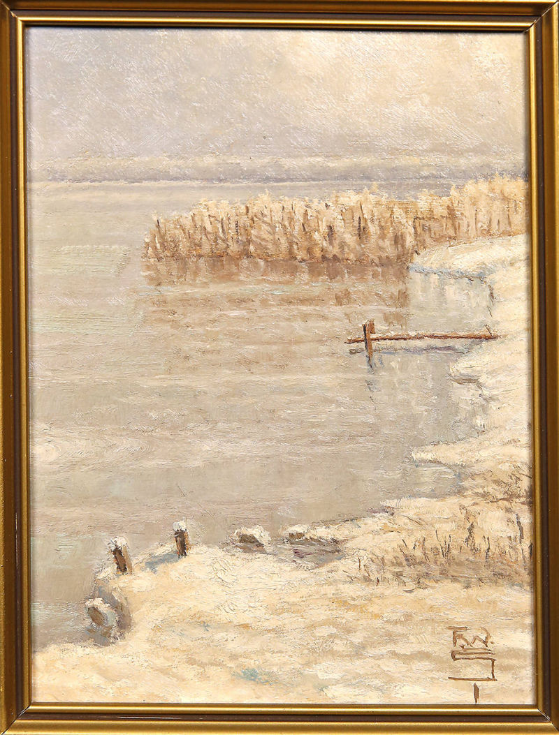 470 Öl auf Hartfaser, 20 x 15 cm, "Eisgang an der Havel"