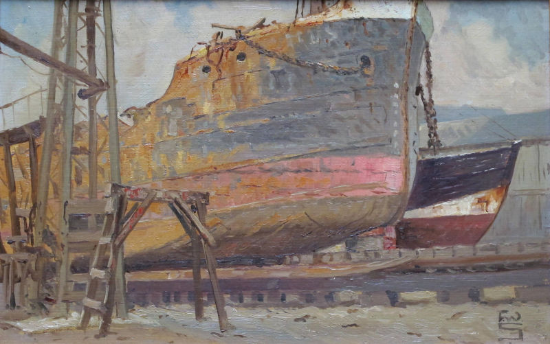 004 Öl auf Hartfaser, 30 x 20 cm, 1950 "Cuxhaven 1950"