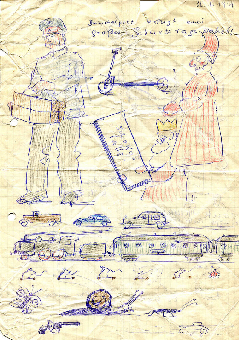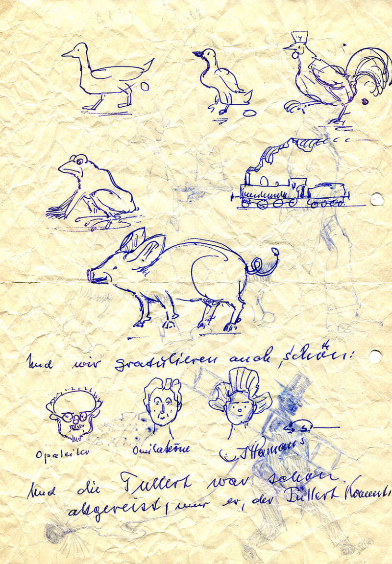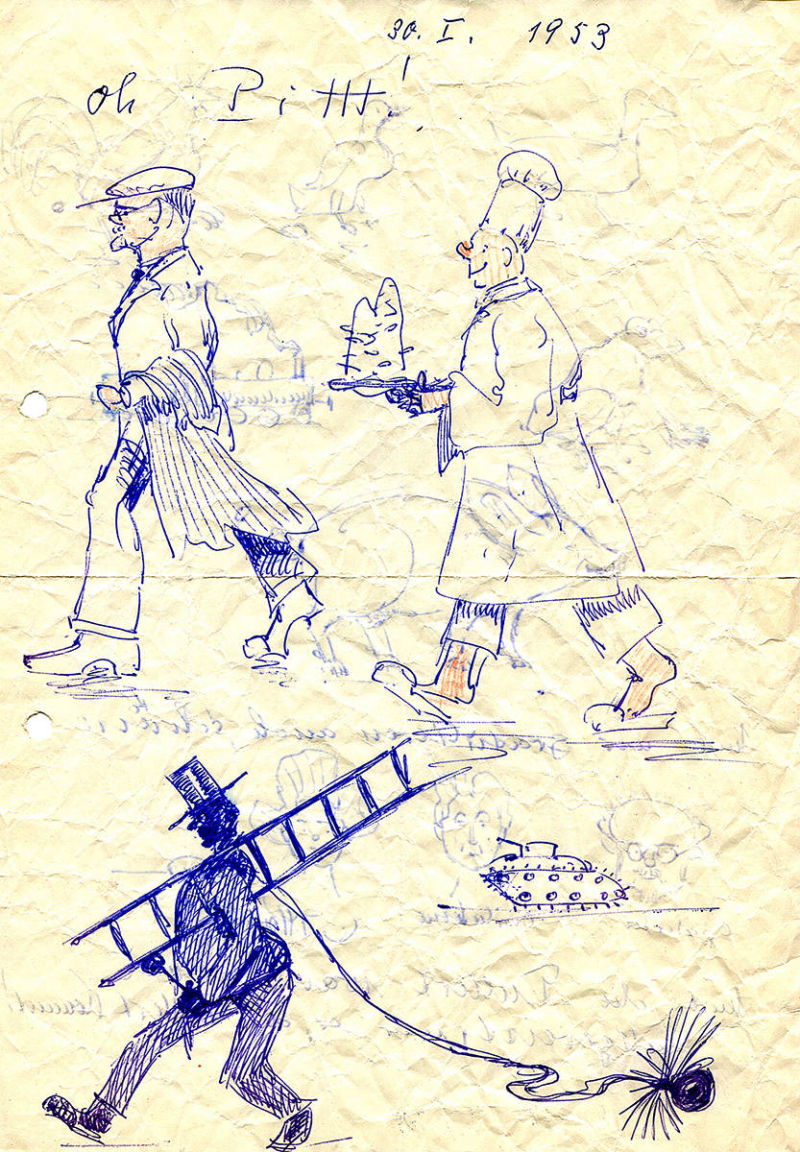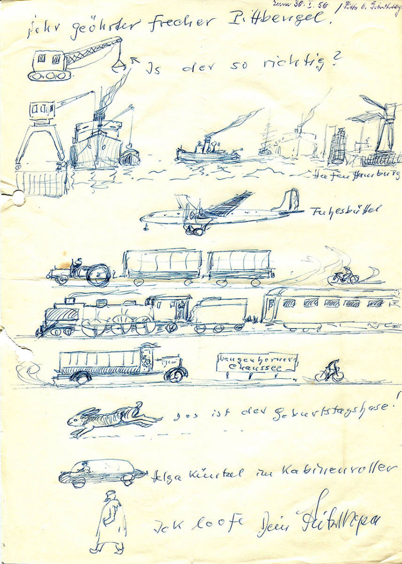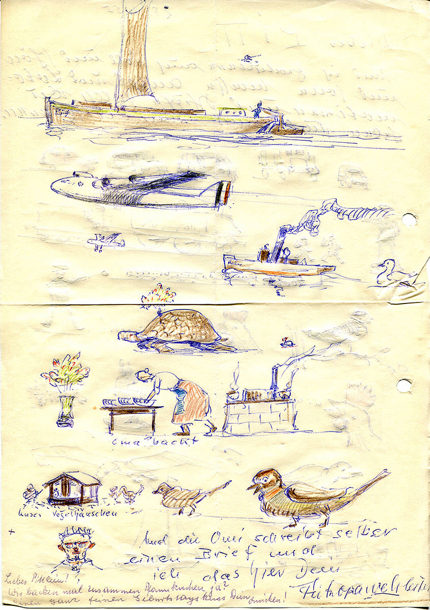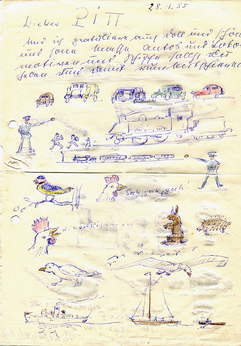 "Sehr früh sah ich meinen Großvater an der Staffelei sitzen und malen. Das langsame Entstehen eines Bildes hat mich sehr fasziniert. Das muss zu der Zeit, zu der mein Großvater in Stuttgart lebte (1951-1955), gewesen sein. Meine Brüder und ich haben danach im Kinderzimmer regelmäßig versucht Schiffe und Wasser zu malen. An der Darstellung von Wellen haben wir jedes Mal aufgeben müssen. Als kleine Kinder waren wir natürlich nicht in der Lage derartig natürliche Bilder von Meereswellen zu zeichnen.